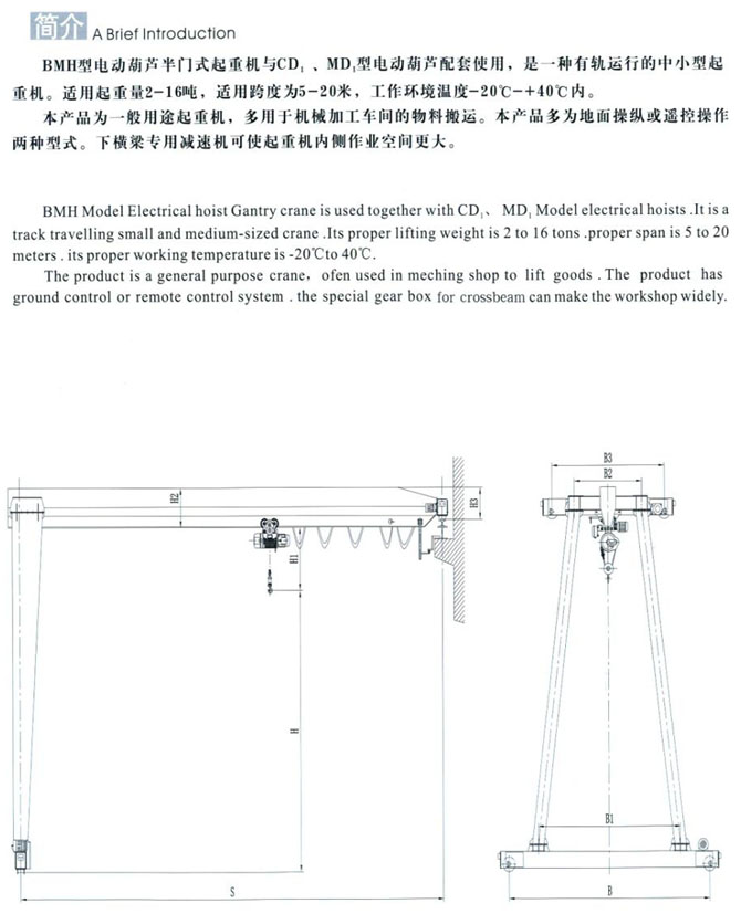 MHB型2-10t電動葫蘆半門式起重機