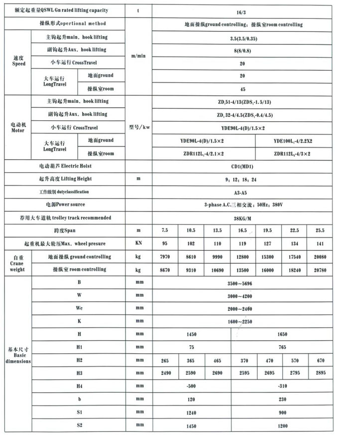 QD型5~100/20t吊鉤橋式起重機(jī)